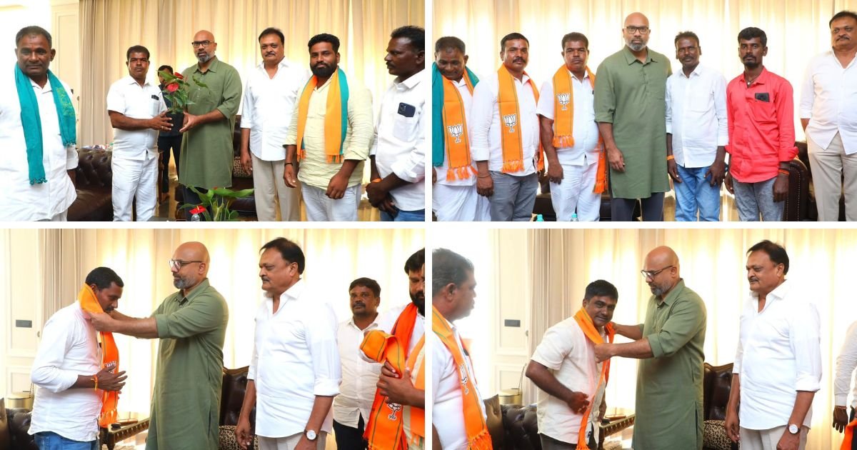 In Kalyapur village of Renjal Mandal, former Sarpanch Maini Mohan (Congress), along with UK Ramana, and village elders Janagam Srinivas Reddy, Mohan Reddy, and Saireddy of Borgam village, joined the Bharatiya Janata Party (BJP) today, inspired by the good governance and vision of Prime Minister Narendra Modi. Arvind Dharmapuri, Member of Parliament, welcomed them into the party by offering the BJP scarf (kanduva) and extending his warm greetings. The event was attended by BJP State Executive Member Medapati Prakash Reddy, Nizamabad District Social Media In-charge Kurella Sridhar, Mandal President Kyatham Yogesh, and several other party leaders.