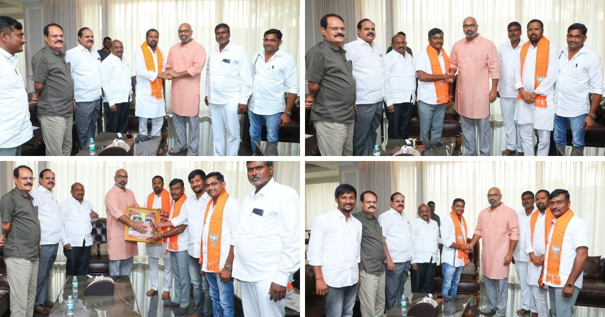 Prominent leaders from the BRS Party — Thirumani Ramana, Routhu Rajesh (former Vice-Chairman, Pegadapalli Market Committee), Shekalla village former Sarpanch & Senior Advocate, and Ragilla Srinivas — joined the Bharatiya Janata Party (BJP) today, inspired by the good governance and vision of Prime Minister Narendra Modi. Arvind Dharmapuri, Member of Parliament, welcomed them into the party by offering the BJP kanduva (scarf) and extending his greetings. The joining program was attended by Jagitial District BJP President Yadagiri Babu, former President Morepalli Satyanarayana, Local Election In-charge Paparao, and several other party leaders.