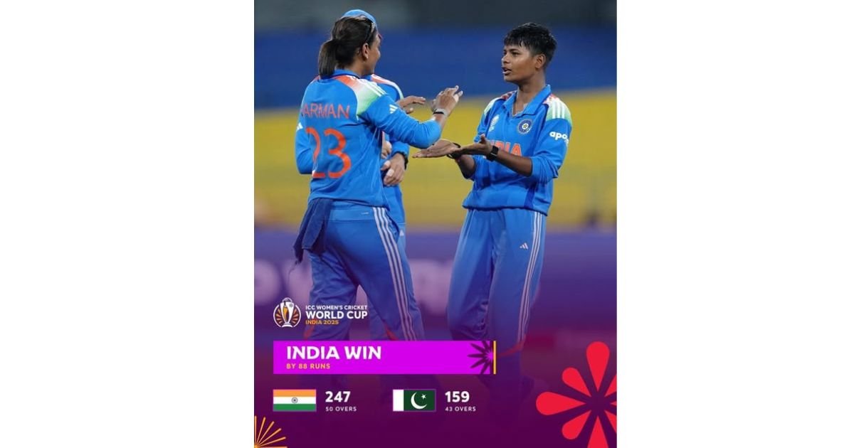 Arvind Dharmapuri congratulated the Indian Women’s Cricket Team on their remarkable 88-run victory over Pakistan in the ICC Women’s Cricket World Cup 2025. He highlighted that in the last 13 encounters between India and Pakistan in ODI World Cups — both men’s and women’s — India has maintained an unbeaten record. He extended his heartfelt congratulations to the Women in Blue, celebrating their performance as another proud moment for the nation.